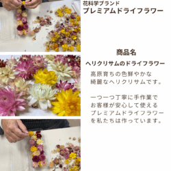 - 花科学プレミアム「ドライフラワー」は、高原の自然豊かな大地で育った新鮮なお花を使い作成されたドライフラワーです。