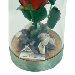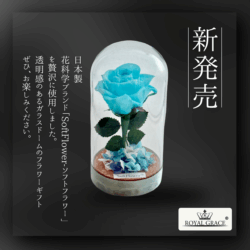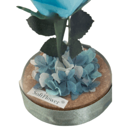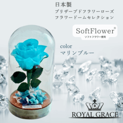 花科学が誇る日本国産プリザーブドフラワーブランド「SoftFlower®︎(ソフトフラワー)」を贅沢に使用した、上質なガラスドームアレンジメントです。バラ(ソフトフラワーシリーズローズ)とふじさんアジサイのみを厳選し、バラの茎部分にはリアルな質感と高い耐久性を実現したリアルアーティフィシャルステムを採用。透明なガラスドームが繊細な花々をやさしく包み込み、埃や汚れからしっかりと守ります。