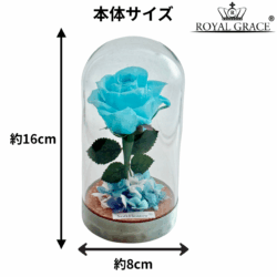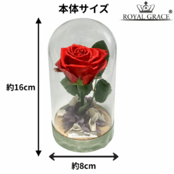 ガラスドーム入り本体サイズは高さ16cm×直径8cm。省スペースで飾りやすいコンパクト設計。 - 専用パッケージ