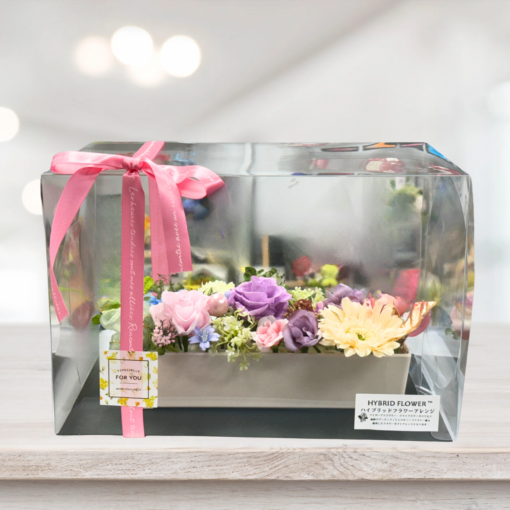 【フラワーカクテル】トレンド感溢れる長方形プリザーブドフラワーアートギフトB