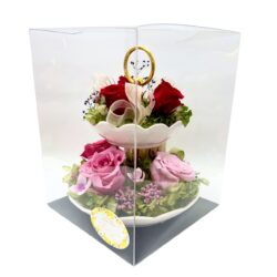 クリアギフトケース入りなので、贈り物としてそのまま渡せるのも嬉しいポイント。コンパクトながら存在感があり、インテリアにも映えるフラワーギフトです。