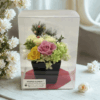 本商品はプリザーブドフラワーとアーティフィシャルフラワー(造花)を使用したハイブリッドフラワーギフトです。