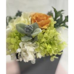 プリザーブドフラワーを使用しているため、長期間その美しさを保ち、お手入れも簡単。特別な日のプレゼントとして、また日常のインテリアとしても楽しめる、心温まるギフトです。